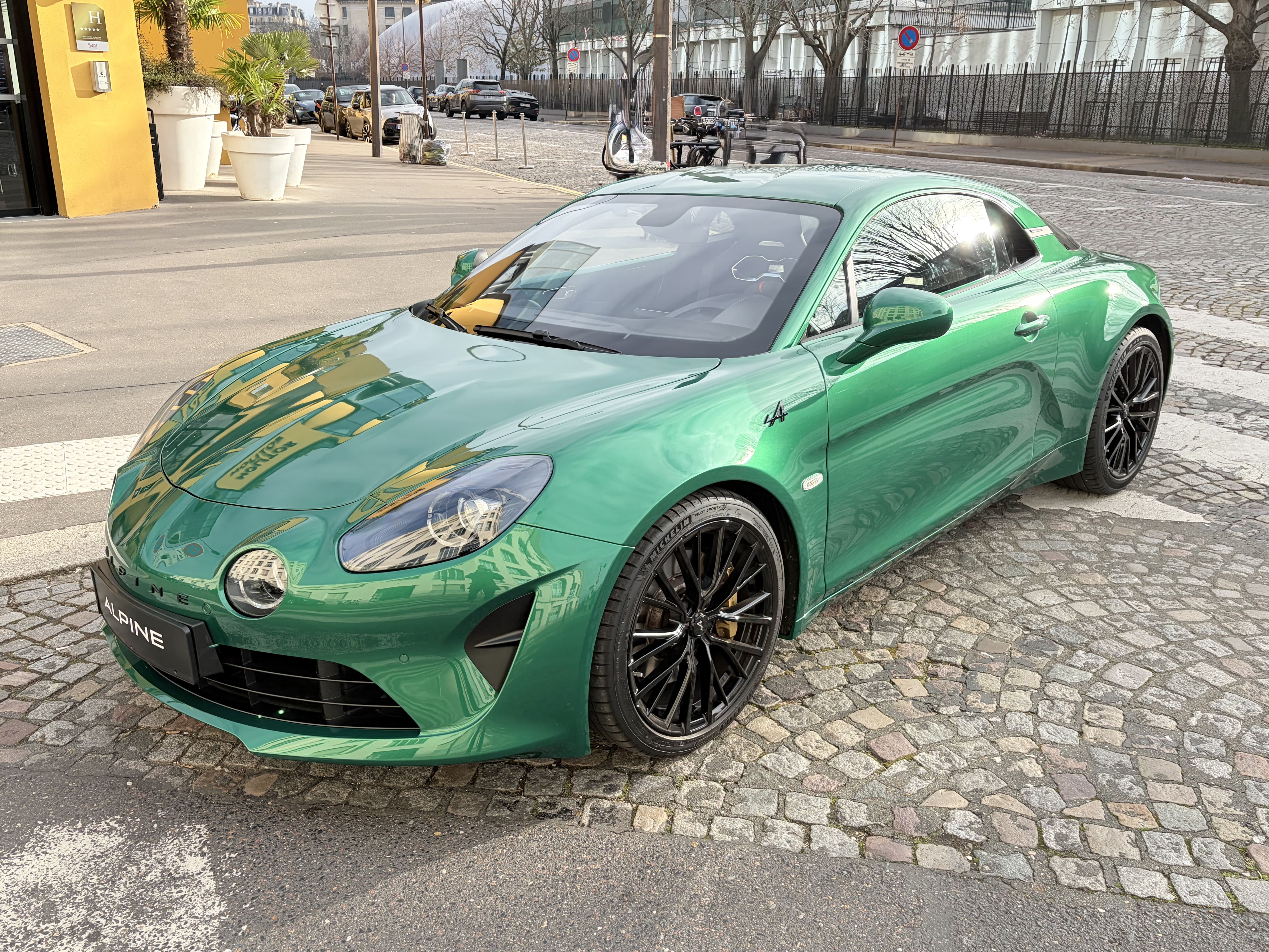 Alpine A110 S 300cv dans sa rare couleur Vert Émeraude, limitée à 110 exemplaires, tous vendus en quelques jours lors de la commercialisation ! Cet exemplaire d’octobre 2023, totalise 25200Km. La révision annuelle en Centre Alpine vient tout juste d’être effectuée. La garantie constructeur Alpine Europe est couverte jusqu’en octobre 2026. L’auto dispose d’un nombre très important d’options pour une valeur totale de 12260€.